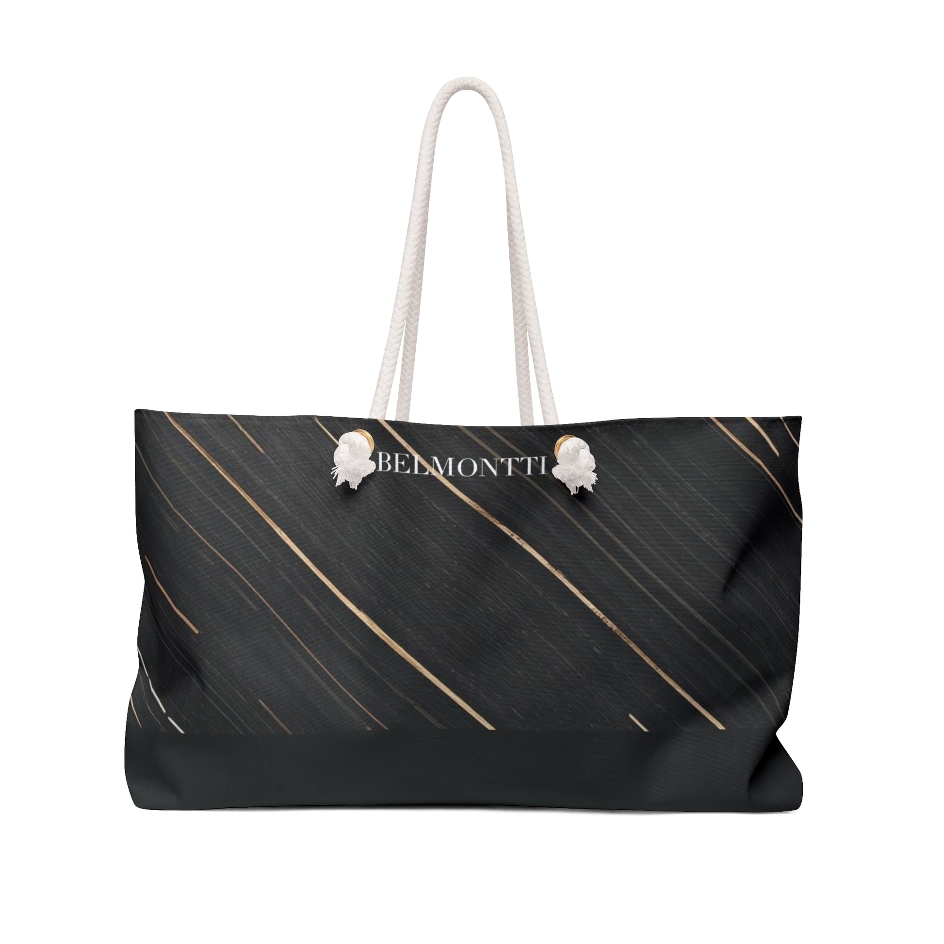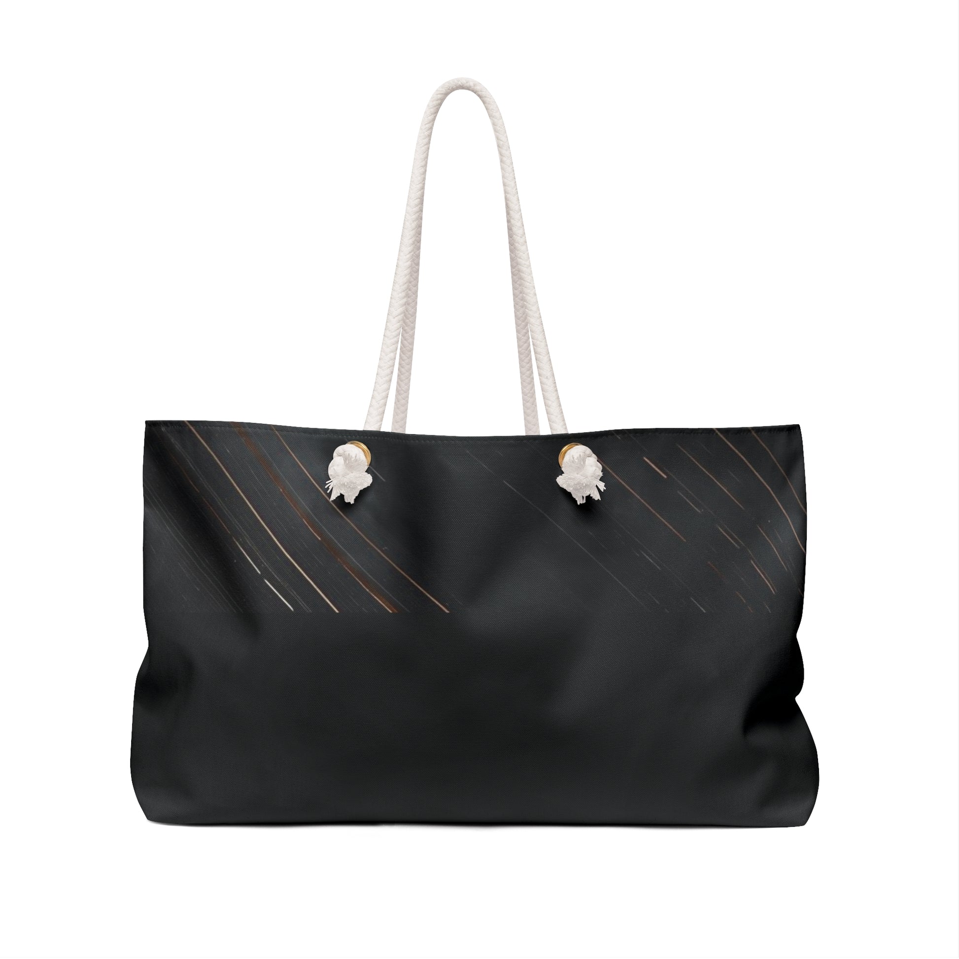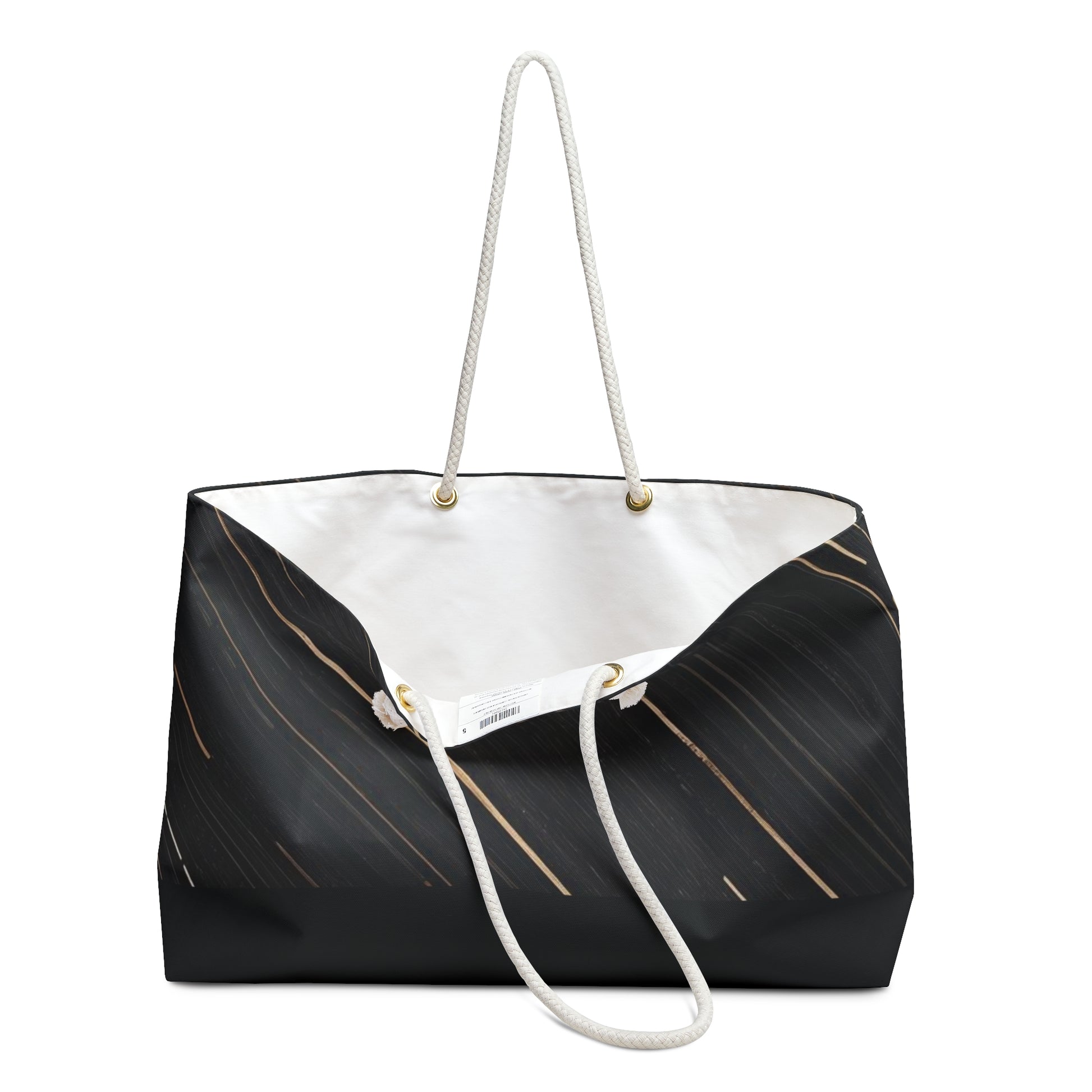 The Eclipse Weekender bag captures the allure of modern minimalism - sleek black with subtle gold linear accents that shimmer like motion caught in light. Designed for those who travel with intention, its bold yet refined aesthetic reflects quiet confidence and timeless style.