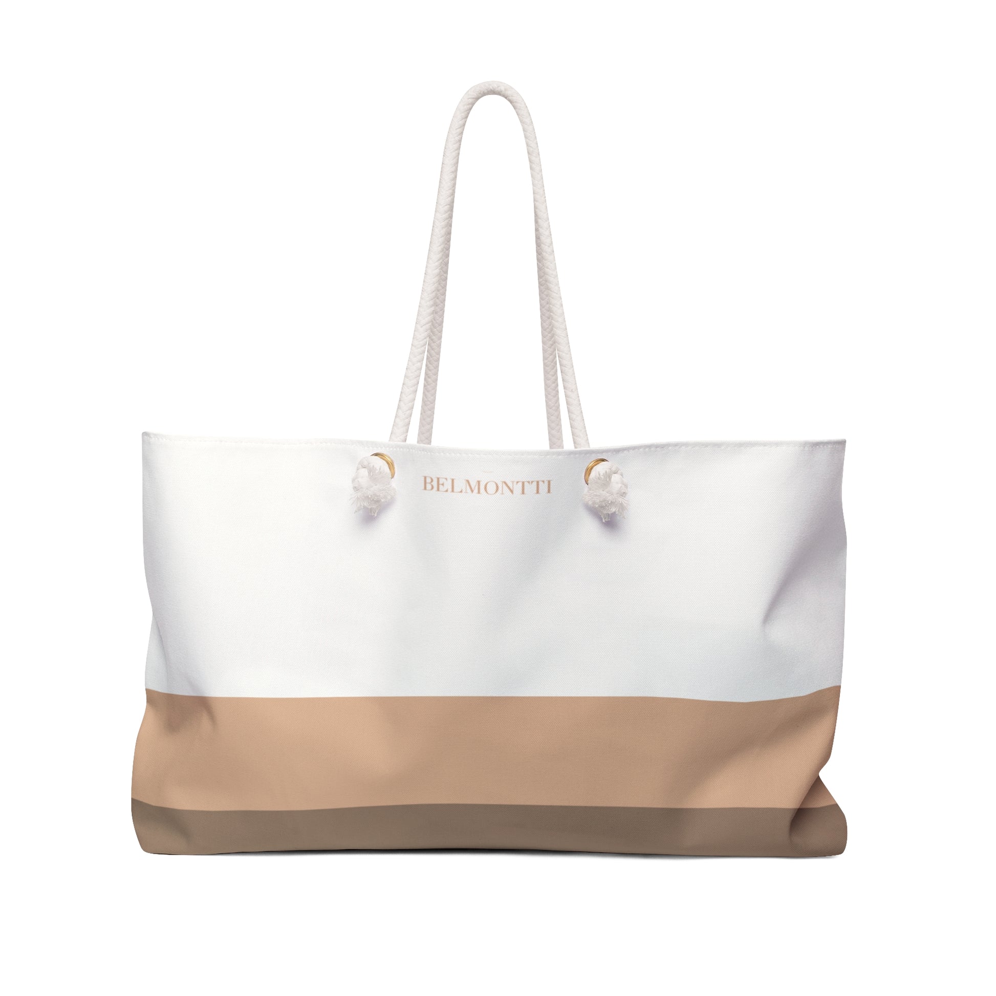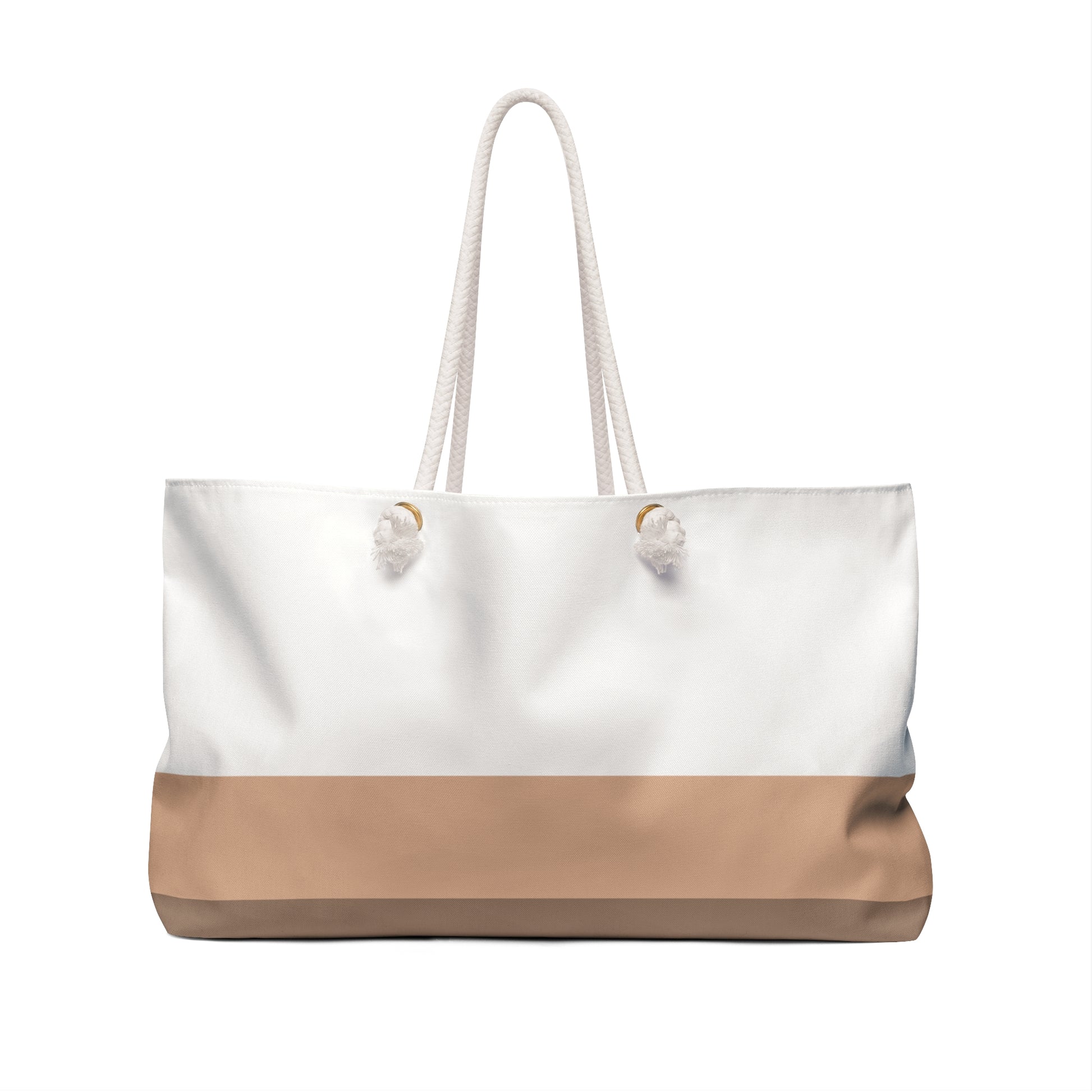 Elevate your travel game with our stylish Halo Weekender bag, designed for those who appreciate both function and flair. Perfect for spontaneous getaways and weekend excursions, this chic and minimalist bag with cream-colored rope handles adds a touch of sophistication to any ensemble. Ideal for trendsetters and on-the-go individuals, it makes a thoughtful gift for holidays like birthdays and graduations. Bring a sense of elegance and practicality to your travels with this beautiful weekender bag.